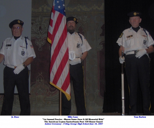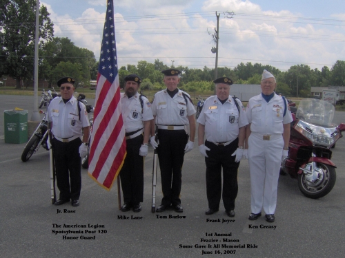 Photo Galleries Frazier-Mason Memorial Ride 6-16-20 Gift Baskets 16 December 2019 Food Drives 2019 Christmas Parade 7 December 2019 Ride2Recovery May 2012 Spotsylvania Parade 3 Dec 2011 Bowling Green Veteran's Parade June Some Gave All Bike Rally 2011 Rolling Thunder 2011 John Mastin Baseball Field - Jun 20 Post 320 Members - Military Photos Action Photos - Post Members Officer Installation June 2007 Frazier-Mason Memorial Ride 6-16-20 Honor Guard Post Awards Dinner Nov 10, 2007 Patriotic Military Clip Art Grand Opening Ceremony 17 May 2008 EXTRA Auxiliary July Meeting 2025 Flag Program
